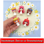 Ob Blumenmädchen oder Brautjungfer – Itsuki trumpft in dieser Wedding-Version mit einer ungewohnt festlichen Ausstrahlung auf. Statt Schuluniform trägt sie ein schlichtes weißes Kleid und eine aufwendige Blütenkrone in sattem Rot, die perfekt zu ihrer Haarfarbe passt. Der Anhänger stammt aus einer Gashapon-Serie von Bushiroad und zeigt die jüngste der Nakano-Schwestern im Mini-Chibi-Format. Ob an Tasche, Regal oder Sammelbrett – Itsuki sorgt mit ihrem entschlossenen Blick und der typischen Haarlocke für charmanten Quintuplets-Flair in jeder Sammlung.